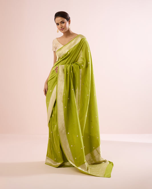 ASHARFI BOOTI SILK VOILE SAREE – LIME & SILVER