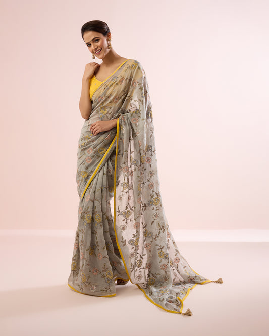 BEGONIA CHANDERI SILK SAREE - OVERCAST BLUE