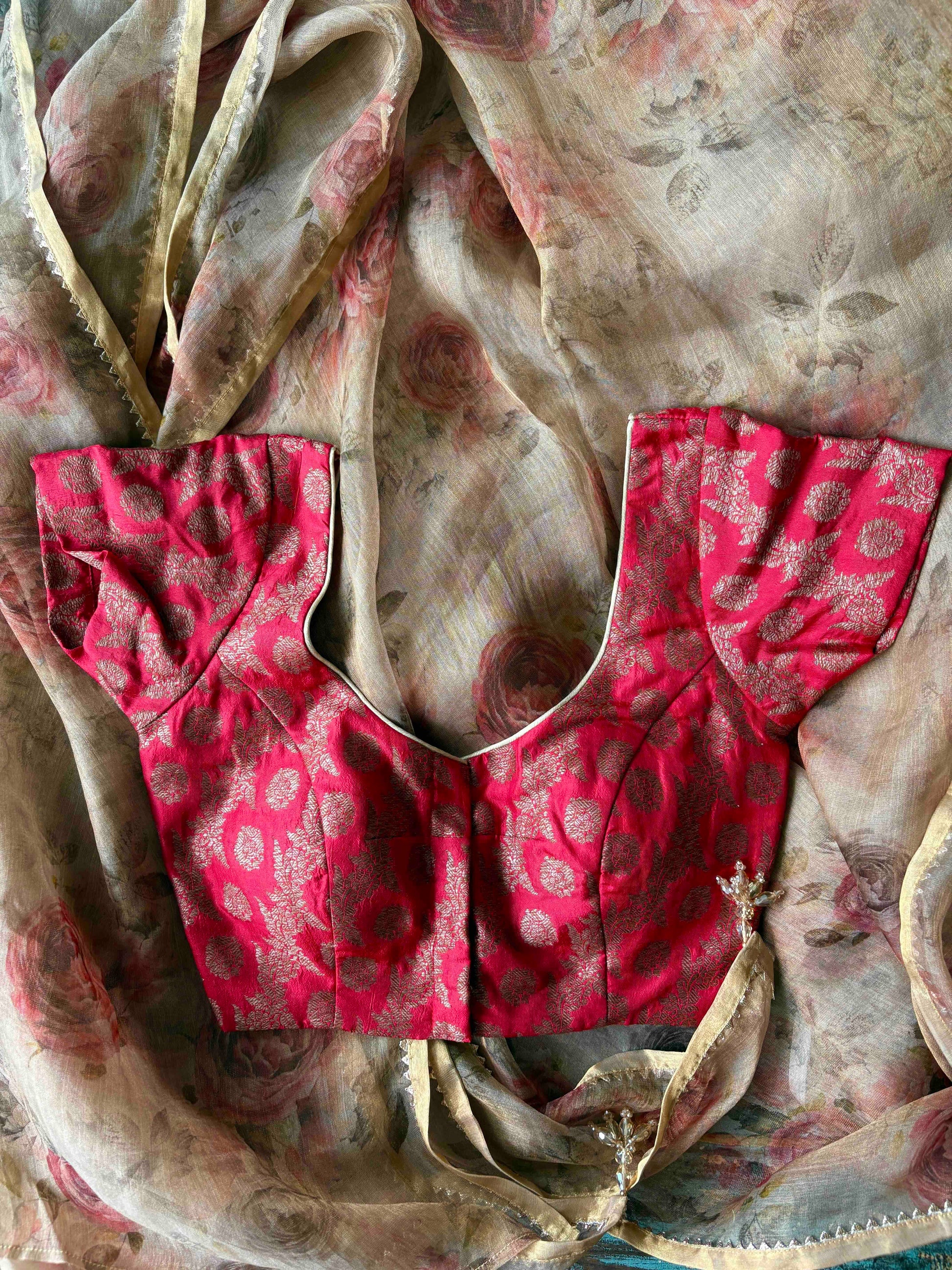 Blouse: 1 metre unstitched Benarasi Silk Brocade (Red & Gold)
